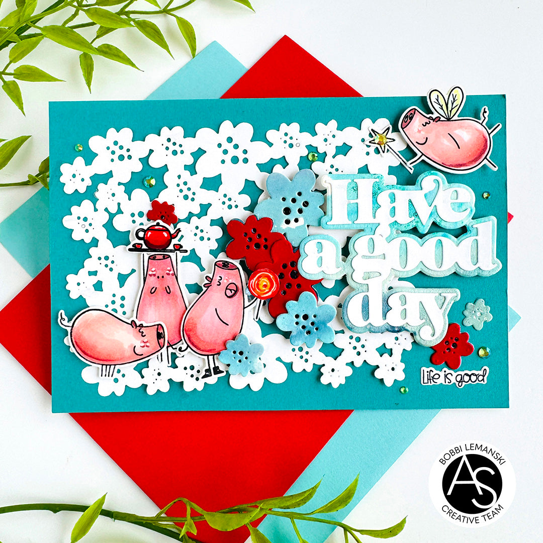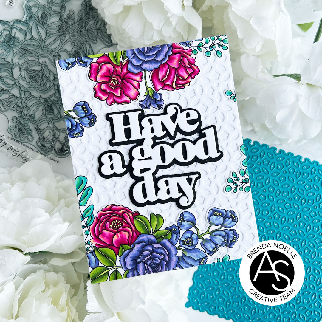 The Good Day Quilted Rectangles Die Set from Alex Syberia Designs is an essential die set for any cardmaker. This versatile set includes two rectangles and a "Have a Good Day" sentiment with its shadow, perfect for adding a personal touch to any project. The larger rectangle measures 107.95 x 139.7 mm, the smaller one is 95.25 x 127 mm, and the sentiment spans approximately 78.74 x 68.58 mm.