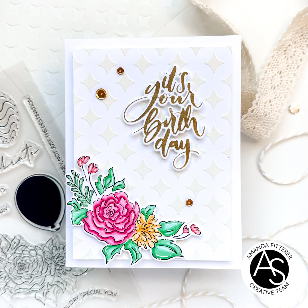 Introducing the 'It's Your Birthday' Hot Foil Plate and Die Set from Alex Syberia Designs, a dynamic duo that includes a hot foil plate and a coordinating die. This set features a fresh and modern handwritten font, perfect for your birthday projects. With both the 'It's Your Birthday' hot foil plate and its coordinating die included in a single package, it offers convenience and efficient storage. Designed for cardmaking and scrapbooking projects.