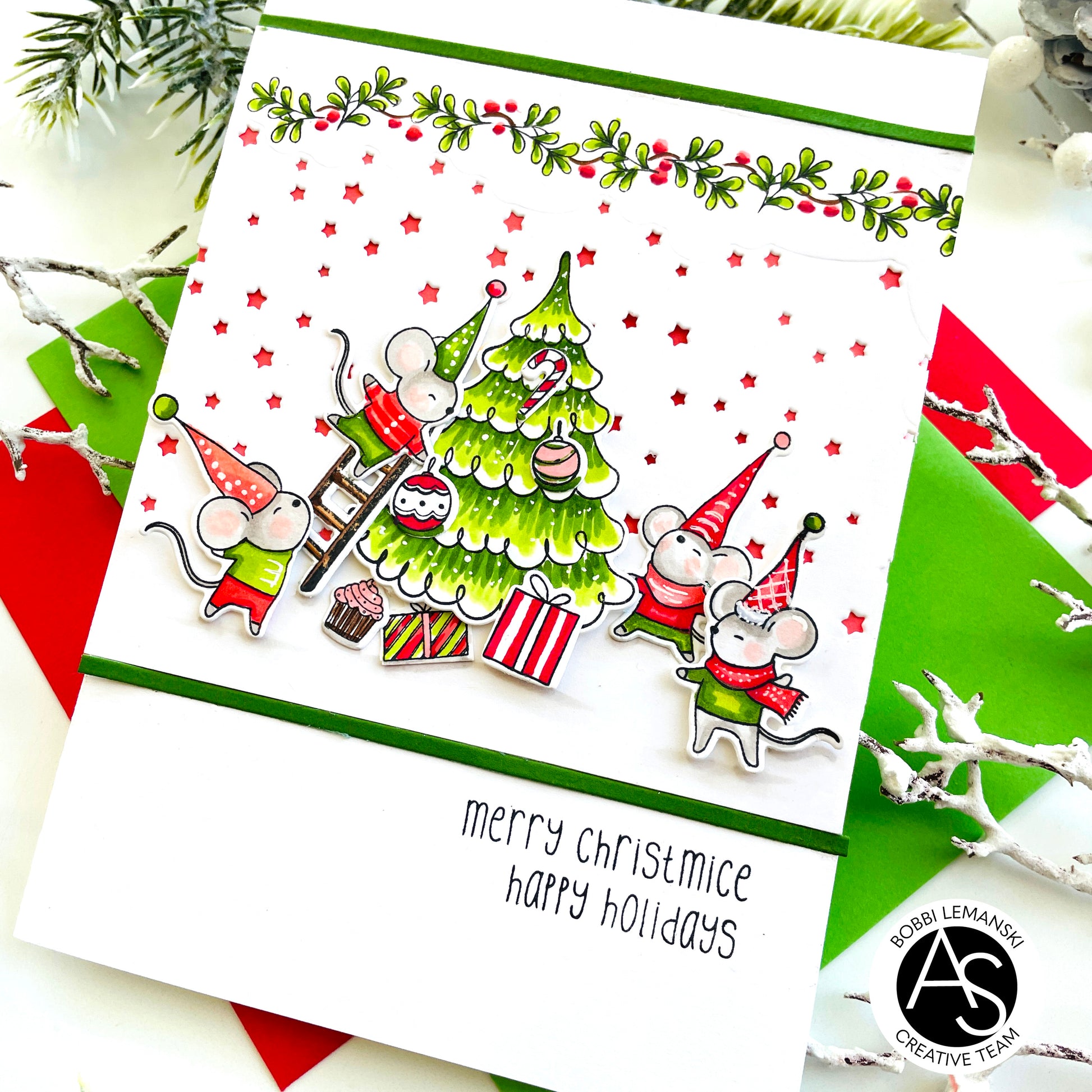Designed to be used together with the Merry Christmice Stamp Set.