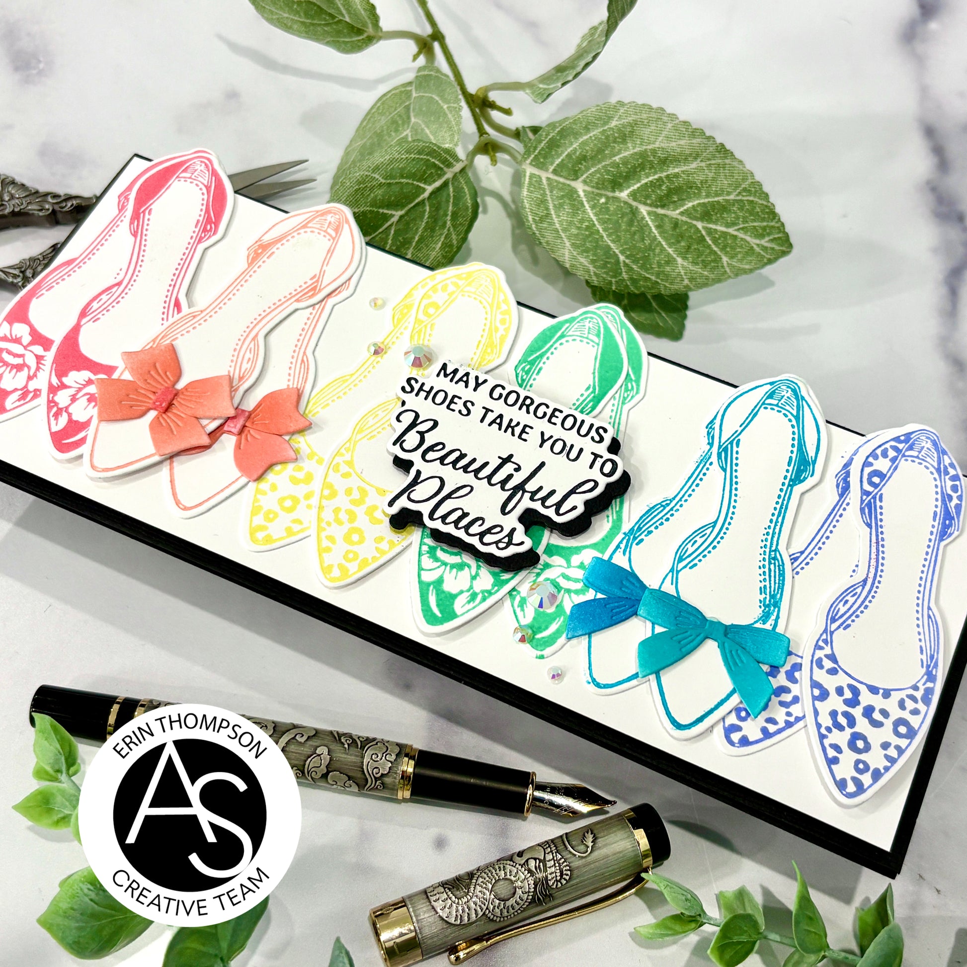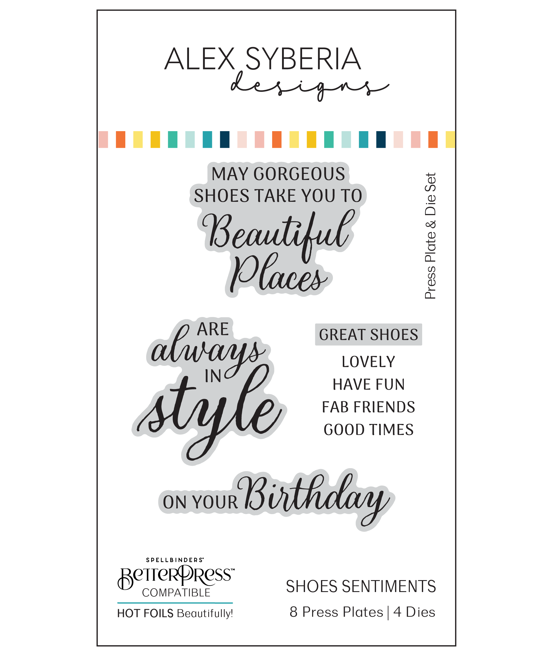 Add the perfect finishing touch to your fashion-inspired cards with the Shoes Sentiments Press Plate & Die Set by Alex Syberia Designs. This stylish set includes elegant and playful sentiments that pair beautifully with the Bow Shoes Press Plate, making your projects truly shine.